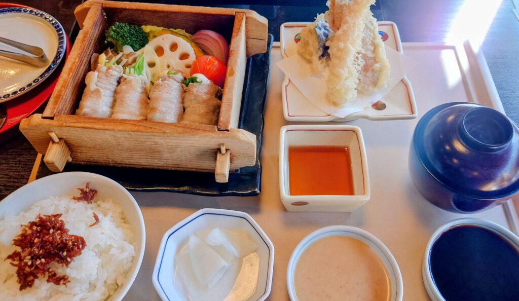 ①豊穣豚のせいろ蒸しと天ぷら定食