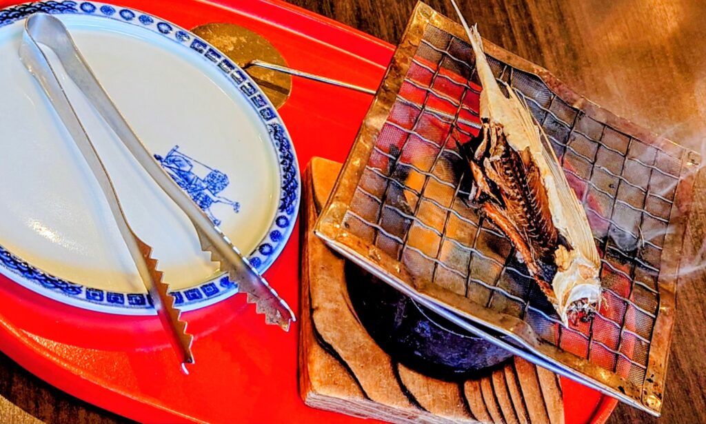 アツアツの焼魚をつゆに入れて食べる蕎麦。ネギも大量!
