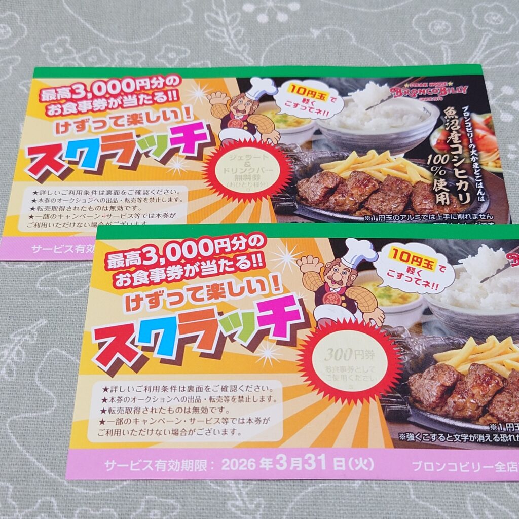 次回使えるスクラッチ券もいただきました。