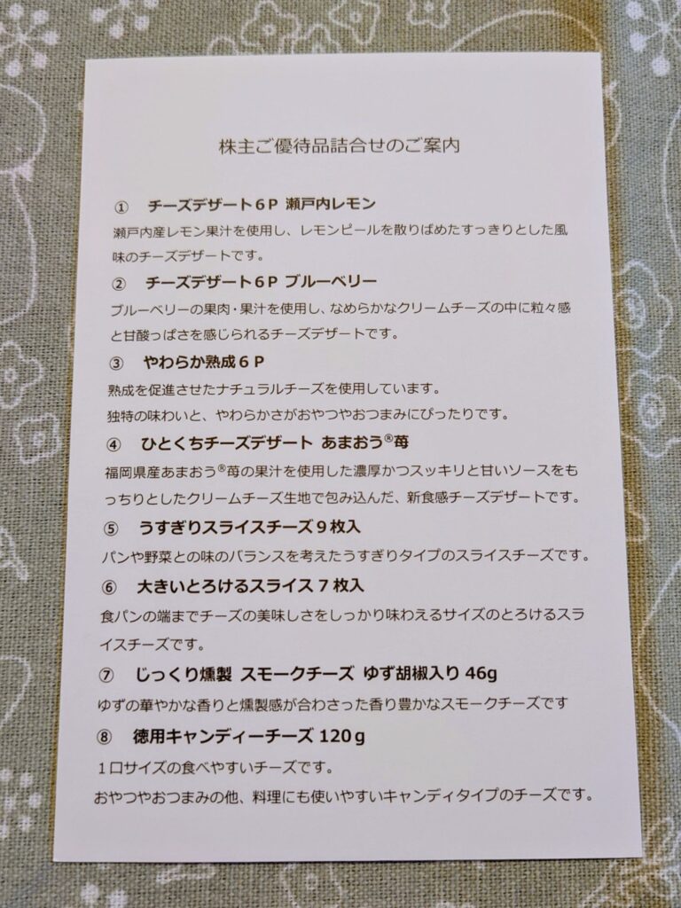 1,000株以上保有で3,000円相当の自社製品詰め合わせが、チルド便で送られてきます。